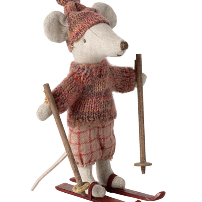 Winter Mouse with Ski Set - Mum - Red